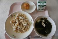 ・チャーハン、牛乳、ポテトアーモンド和え、わかめのスープ