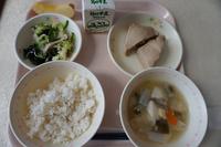 ・ごはん、牛乳、凍み豆腐のはさみに、かにかまサラダ、けんちん汁