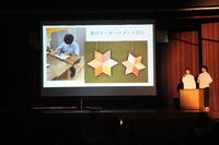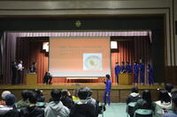 1学年は「きこりの店」での学習と、全編英語で「狼と7匹の子ヤギ」の劇を。2学年は職場体験での学びを。3学年は「舘中王」というクイズを発表しました。