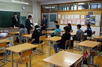 英語の先生とAETの2名による授業を行い、子どもたちは、最初緊張していましたが、授業が進むにつれ、意欲的に参加していました。