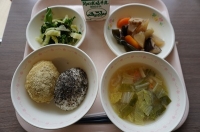 お彼岸メニューということでぼたもち、それもきなこと黒ごまの2種類のぼたもちが