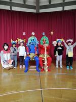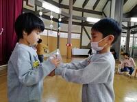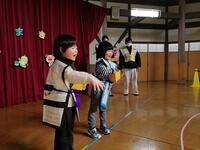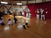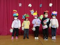 小さい子ども達は、とても怖がり先生と一緒にいるのがやっとでしたが、幼稚園児は、怖がりながらも必死に豆をぶつけていました。そんな子ども達に、鬼も降参し、無事に鬼を退治することができました。