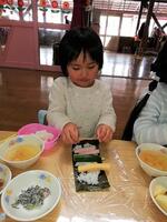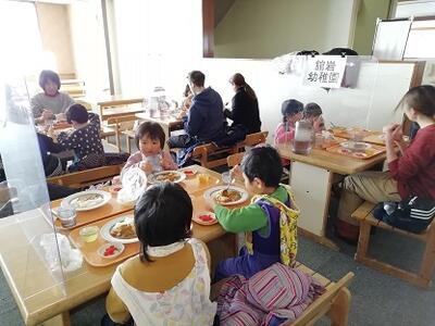 給食では、年長児がリクエストしたメニューを作っていただき、町の菓子店から購入したデザートも食べました!