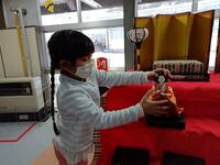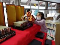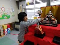 職員から、雛人形にも名前や役割がある事などの話を聞き、みんなで雛段を飾りました。