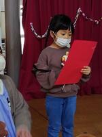 その後は、落花生やお菓子を、年長男児と舘岩支所の方にまいてもらいました。