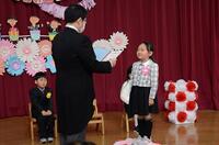 4名の卒園児は、立派に園長先生より卒園証書を受け取り、保護者の方に感謝の気持ちを込めた言葉と一緒に、卒園証書を手渡しました。