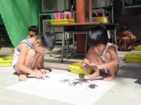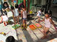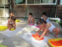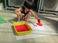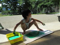 様々なスタイルで絵の具の感触を味わいながら活動していました。