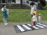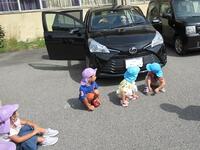 車に子ども達を乗せ、車の前で遊んでいる友達の姿が見えないことを実際に体験することで、車の周りで遊ぶこと、車のかげからの飛び出しの危険について実感することができたようでした。