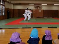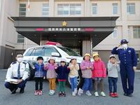 警察署内にある道場にて、警察の仕事や持ち物について教えていただいたり、柔道の技を見せていただいたりしました。また、DVDで交通ルール、模擬信号機で信号機の見方、横断の仕方など学びました。実際に大きな交差点を渡り、学んだことを確認することもできました。