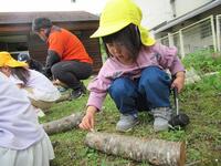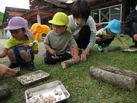 南会津森林組合舘岩支部の方にお世話になり、シイタケのコマ植えを体験しました。
