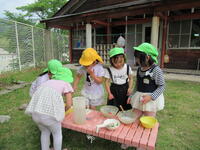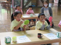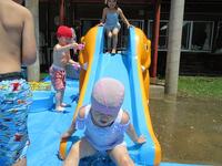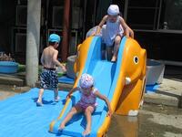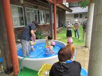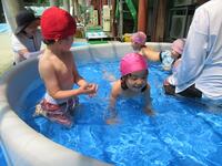 ムシムシする暑さだったので、気持ちよさそうに水をかけ合ったり、水の中でいろいろな動きを楽しんだり、作った水鉄砲で遊んだりしてプール遊びを満喫しました。