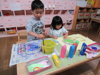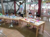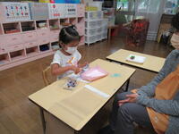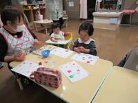 保育室では、じっくりと製作に取り組んだり、シールや粘土でゆったりと遊んだりする姿がありました。