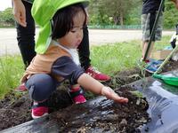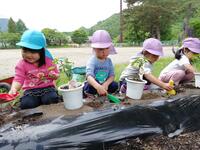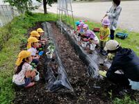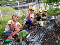 今年度も園の小さな畑に、サツマイモやトマトの苗を植えました。