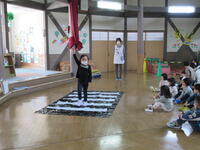 おとぎの部屋の方に、1~2歳児、3~5歳児に合わせた内容の読み聞かせやエプロンシアターなどを行っていただきました。
