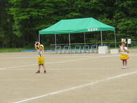 応援合戦も小学生に面倒を見てもらいながら練習し、大きな声で歌うことができました。