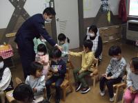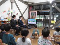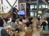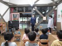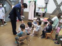 舘岩駐在所長様においでいただき、交通安全についての講話をしていただきました。雨のため路上における実施指導はできませんでしたが、DVDを使って危険な行動について確認することができました。特に、横断歩道では「止まる」「見る」「待つ」を守るよう教えていただきました。また、反射材をいただきましたので、身の回りの物に取り付けてみてください。