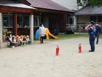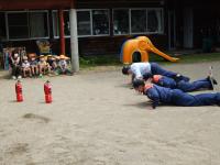 講師として南会津地方広域市町村圏組合消防署より3名の方においでいただきました。非常ベルにも慌てず、落ち着いて先生の指示にしたがって避難することができました。講師の方からも避難の仕方が良かったと褒められました。