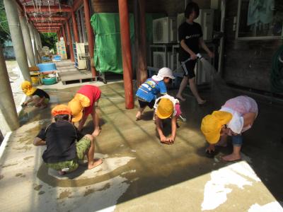 4・5歳児は、プールの準備で、テラスをキレイにお掃除してくれました!