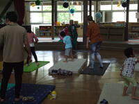 園長のあいさつ後に、親子で一緒に、七夕飾りの製作やタオルを使ったちょこっと遊びなどを行いました。