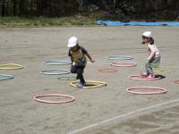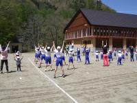 りす組さんとうさぎ・パンダ組さんは小学生と一緒にラジオ体操の練習も行いました。